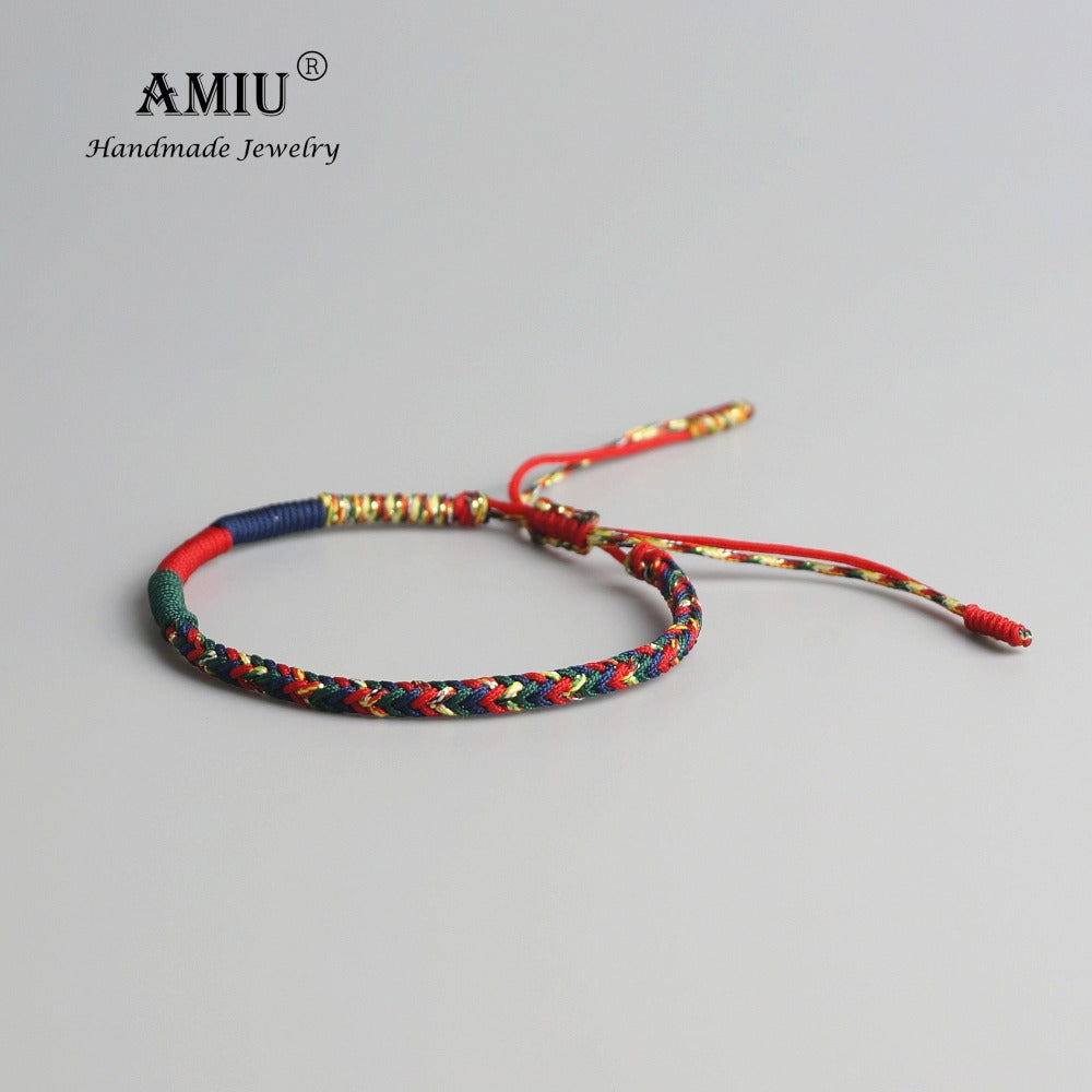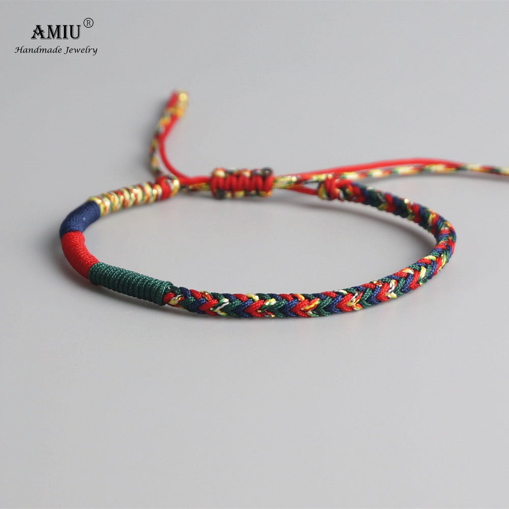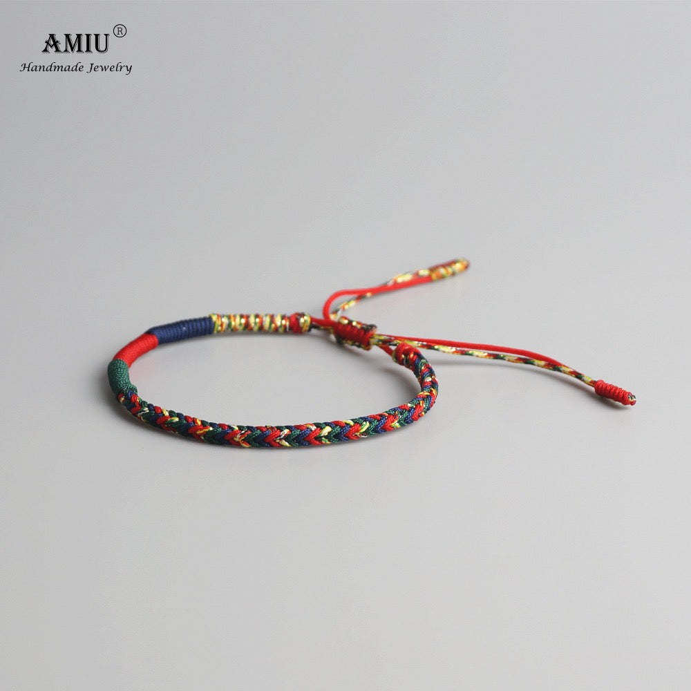 AMIU tibétain bouddhiste porte-bonheur tibétain Bracelets & Bracelets pour femmes hommes à la main noeuds vert corde amulette cadeau Bracelet