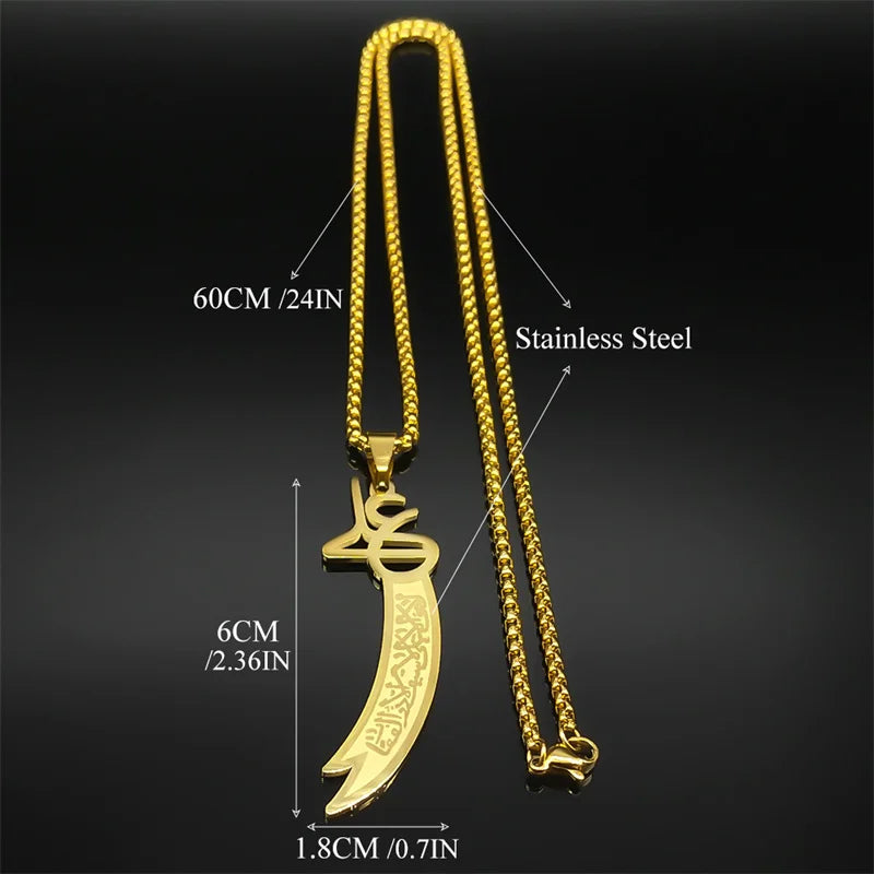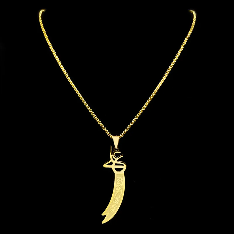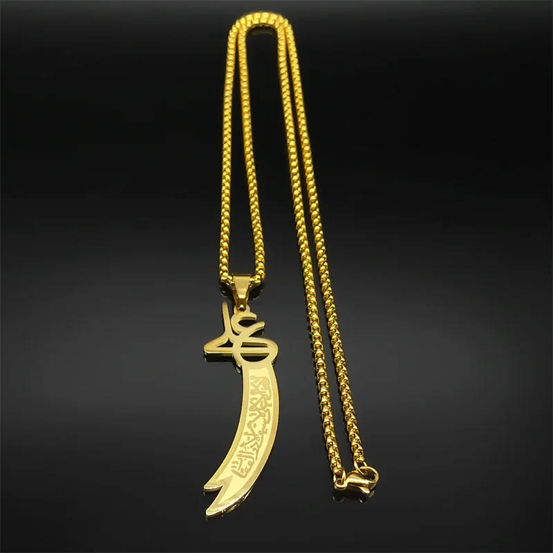 • Imam Ali Zulfiqar Sword Necklace for Men Women Stainless Steel Islamic Muslim Knife Chain Jewelry collar hombre