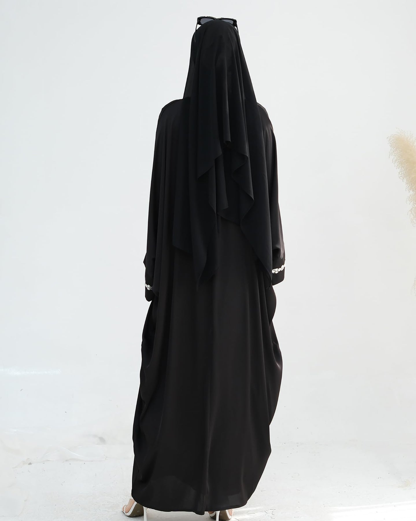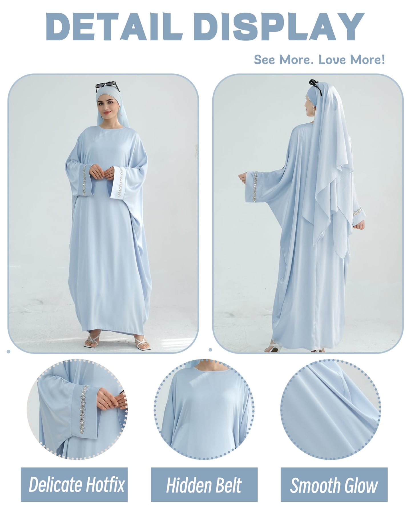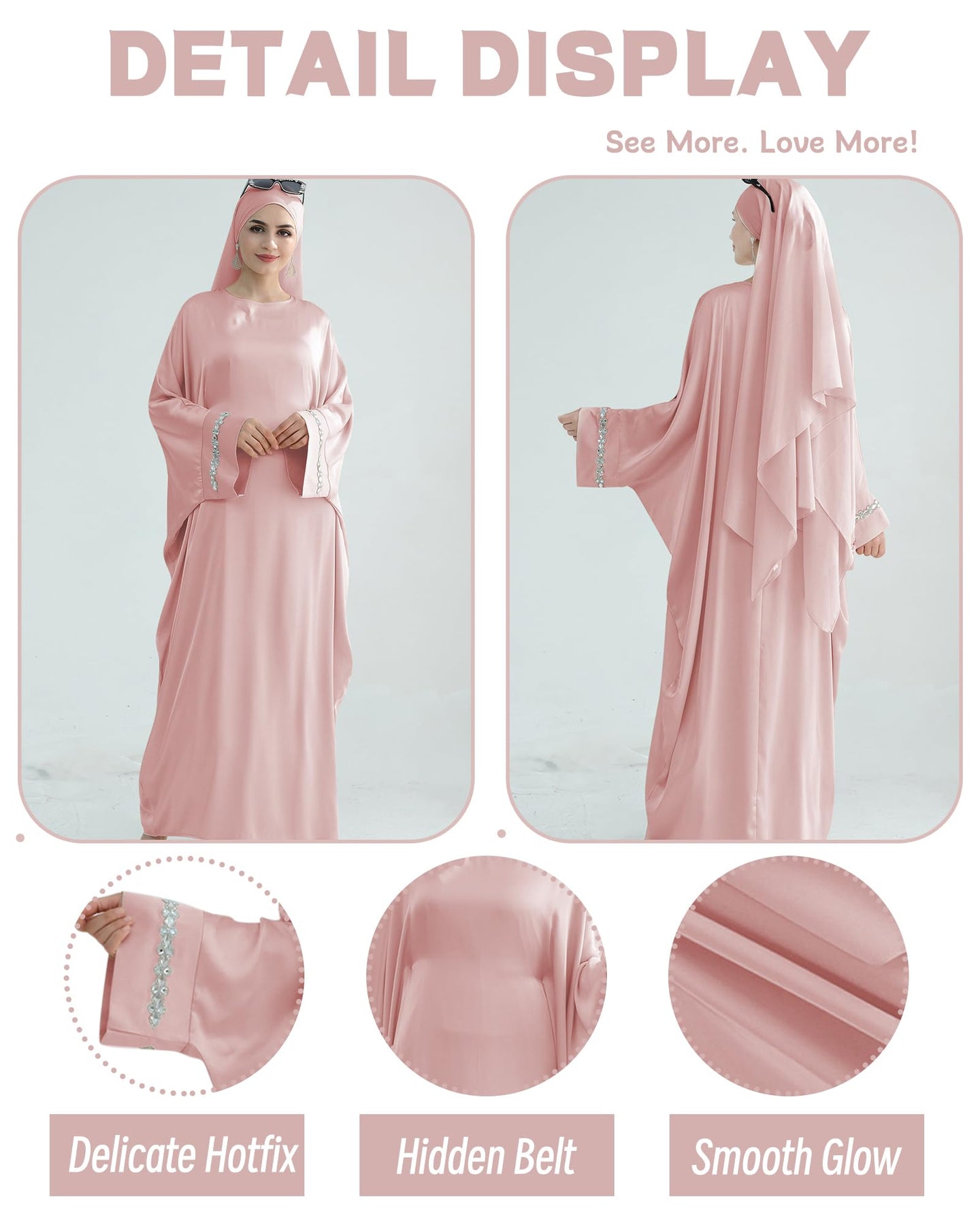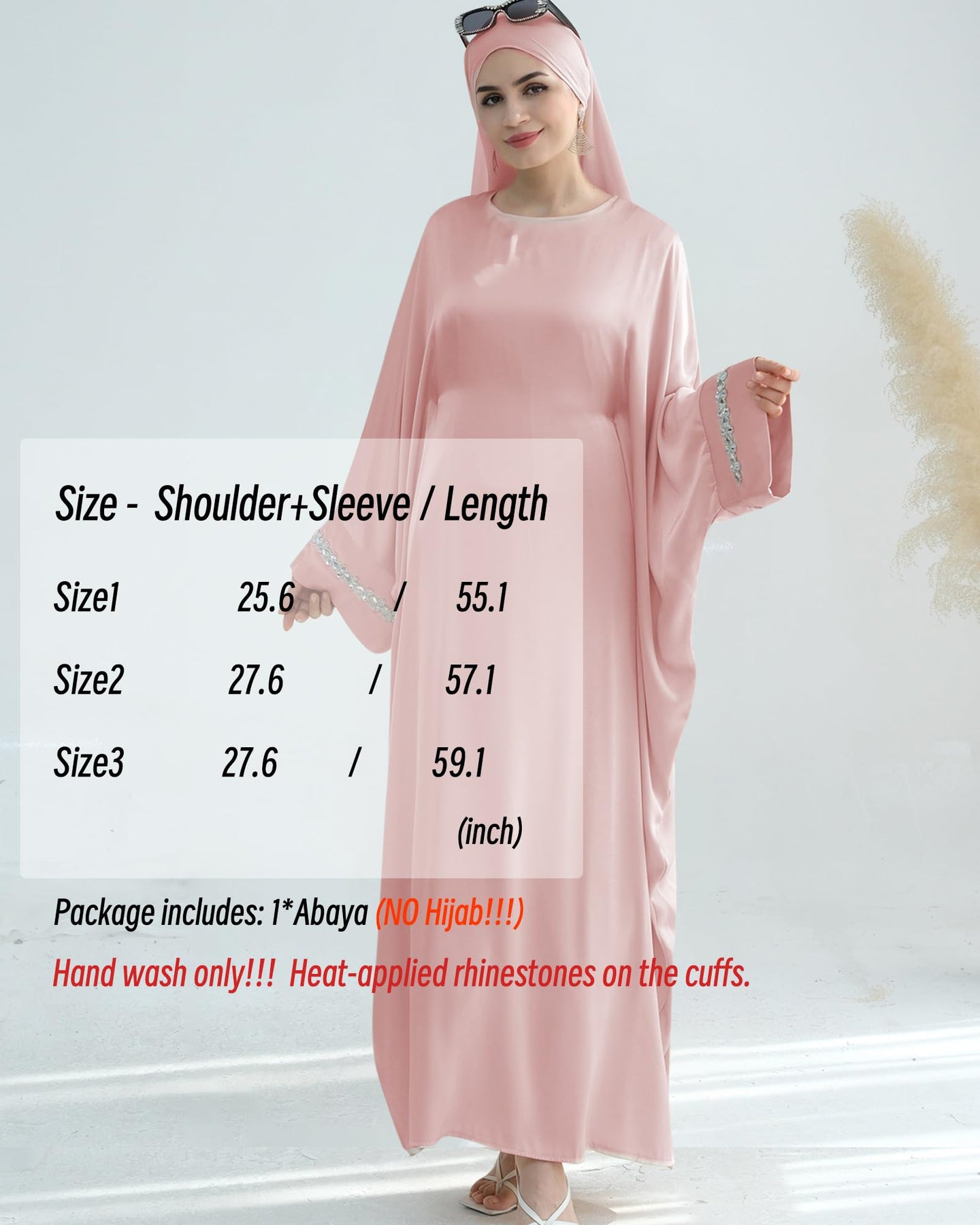 Solid Color Batwing Sleeve Abaya with Handcrafted Chain Beading, Hidden Waistband Modest Muslim Robe Prayer Dress Zohir Store