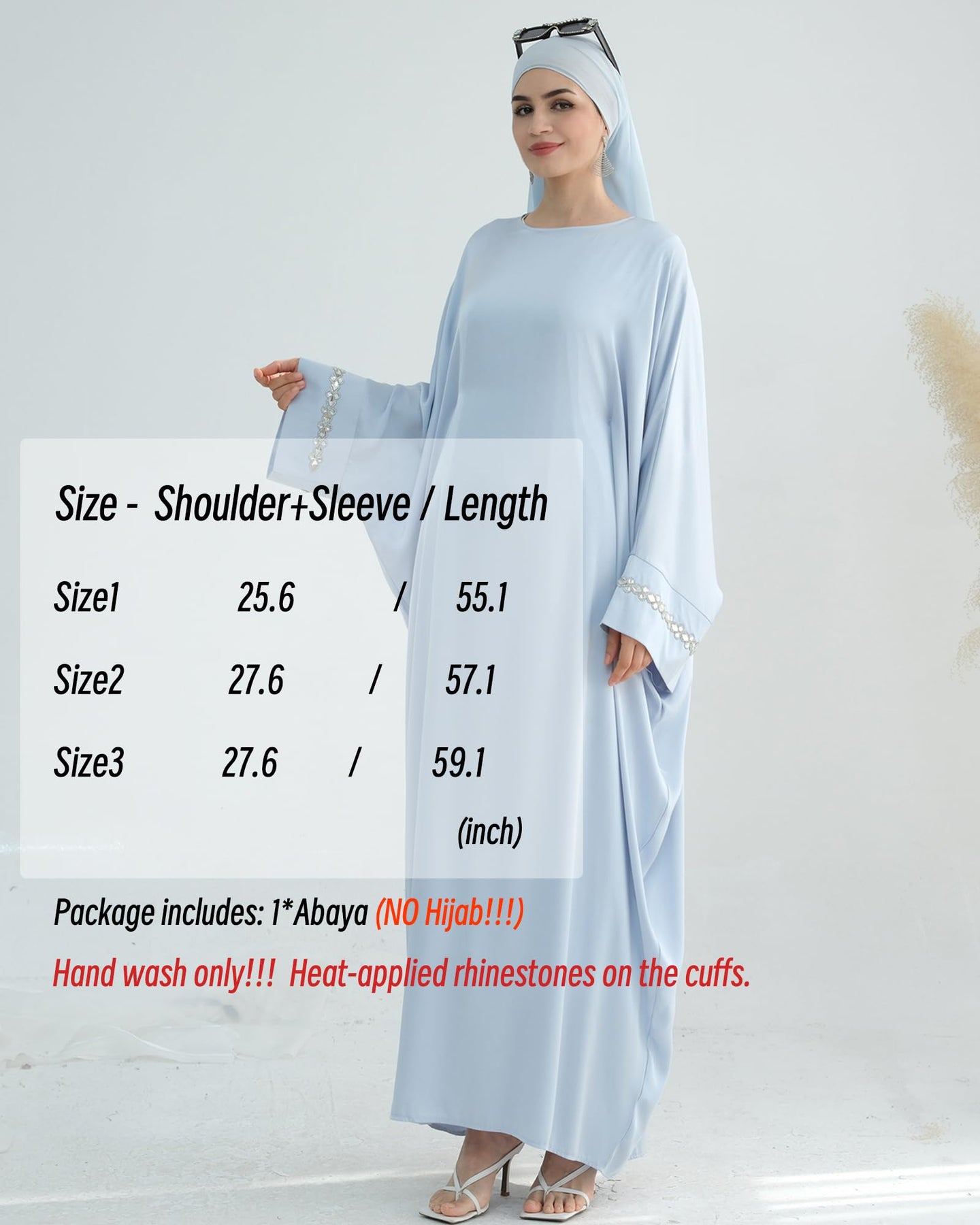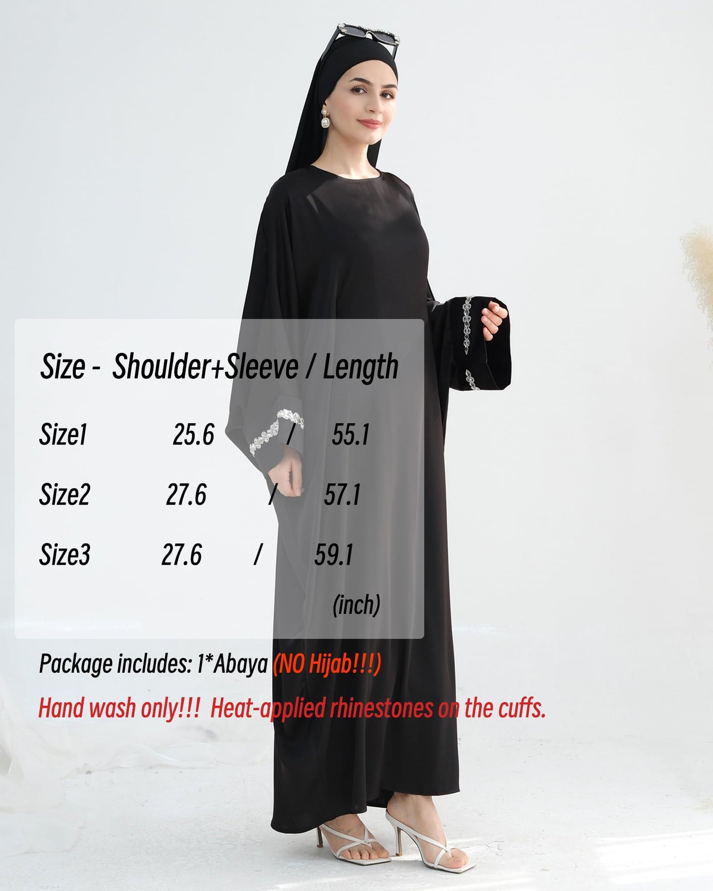 • Détails élégants : Ce modèle présente une encolure ronde et des manches longues pour plus de discrétion ; des perles en chaînette réalisées à la main aux poignets ajoutent une touche de luxe subtile. Sa couleur unie lui confère une allure sobre, tandis que sa taille invisible met en valeur votre silhouette avec élégance.